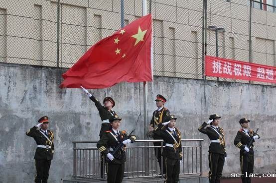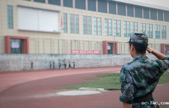 早操时间,全体教官和学生在操场上准时集合整队。在教官们和新生们的瞩目下,由两名升旗手、六名护旗手组成的国旗护卫队迈着整齐的步伐阔步向前行进,在升旗台前整队立定。“升国旗,奏唱国歌!全体都有,敬礼!”随着指挥官一声令下国歌奏响,全体行礼,五星红旗冉冉升起。