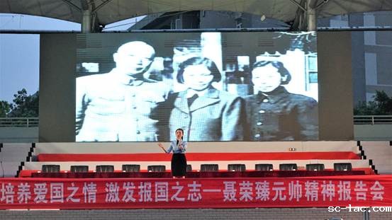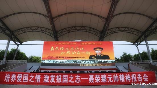 为弘扬中华民族爱国主义精神,帮助青年学生树立起爱国敬业、无私奉献、积极进取、百折不挠的人生观与价值观,9月4日晚,由中共重庆市江津区委宣传部主办,聂荣臻元帅陈列馆、老伟德网上娱乐党委武装部承办的聂荣臻元帅精神报告会在双福校区运动场举行。全体教官及2019级全体军训学生聆听了报告会。