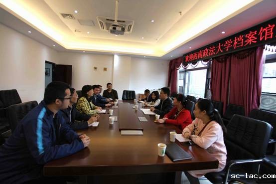 10月17日上午,我校图情档案党总支书记、档案馆副馆长陈国容,档案馆馆长黄健平,档案馆副馆长俞兴东陪同西南政法大学档案馆馆长闫恩晓一行6人参观了校史展览馆、精品档案陈列厅、档案整理室、档案库房,并进行了调研座谈。座谈会上,双方着重在档案信息化建设方面展开了交流。
