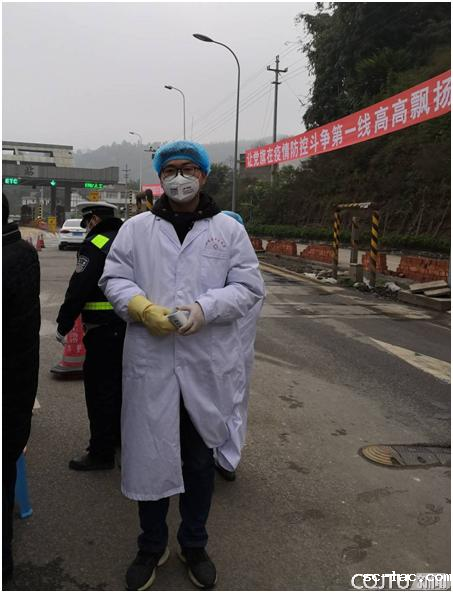 李国际,2019级水利工程硕士研究生,研究生第二党支部书记,在四川省宜宾市江安县中医医院做志愿者。疫情发生后,他被派到江安县怡乐高速进口处,主要负责进入高速的车辆人员的体温测量等工作。