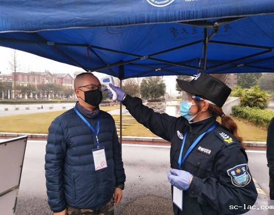 李智从2011年起就担任校区安保队夜班副班长。寒假期间,李智调休回重庆潼南老家。看到全民抗疫新闻后,他立即返校投入到抗疫工作中。安保工作的危险性虽不及一线医护人员,但也存在一定风险。李智和队员们要近距离测量体温、为车辆消毒、进行人员登记。李智表示,他们会做好自身防护,戴好口罩和手套,定时测量自身体温。“平时的工作是保卫学生的安全,现在的工作重点是抗击疫情。”作为曾经参加过老山作战的退役军人,李智昔日守疆门,今日守校门,连续作战,一直在为学校贡献着自己的力量。