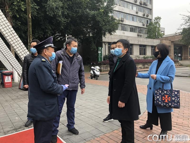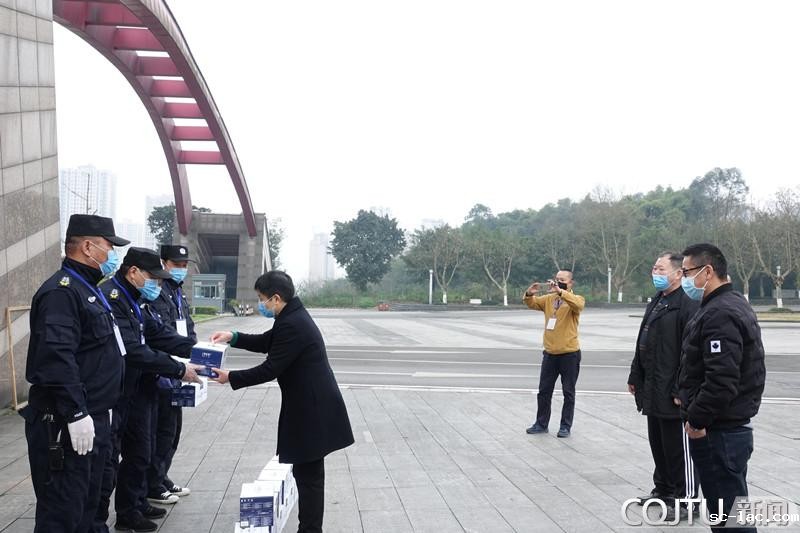 “大家辛苦了,我受李书记、唐校长委托,代表学校和校工会以及相关部门的同志们一起来看望慰问你们。”郑副校长对南岸校区安保一线的工作人员说到。疫情防控战役打响以来,学校安保人员积极投身战疫一线,扎实做好校园安全保卫和来校人员排查工作,配合学校全力筑好疫情防控网。