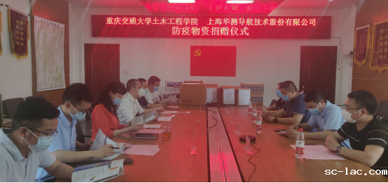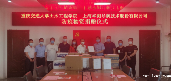 上海华测导航技术股份有限公司重庆分公司副总经理王召强和土木工程学院副院长分别代表校企双方捐赠和接受了防疫物资。