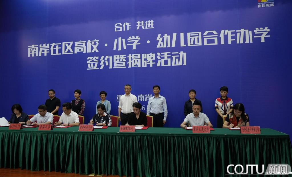 6月1日下午,校党委副书记郑旭煦,校党政办、人事处、校工会部门负责人赴重庆市南岸区行政中心参加南岸在区高校与部分小学(幼儿园)合作办学暨揭牌活动。在南岸区政府相关领导及嘉宾共同见证下,老伟德网上娱乐与南坪实验外国语小学完成合作办学协议签订及揭牌仪式,自2020年6月起,挂牌“老伟德网上娱乐附属小学”。郑旭煦副书记见证签约。