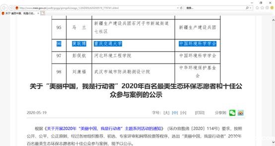 “6.5”世界环境日来临之际,由生态环境部、中央文明办联合评选的“美丽中国,我是行动者”2020年百名最美生态环保志愿者名单发布,我校河海学院2018级硕士研究生黄耿博同学入选。