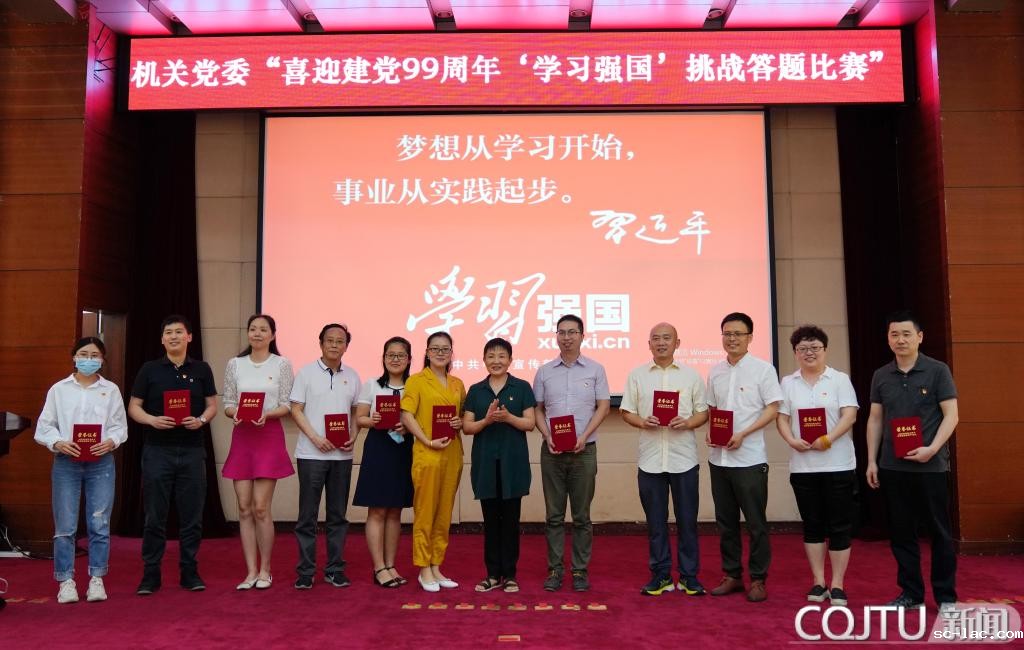 6月18日下午,明德楼408会议室时时爆发出鼓掌声、喝彩声,这里在举行一场“学习强国”现场挑战答题比赛,机关党委用学习的方式庆祝中国共产党建党99周年。校党委副书记郑旭煦出席比赛现场,机关党委委员、校纪委副书记刘一华,机关党委常务副书记朱静参加活动。