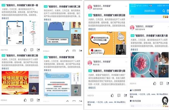 据悉,此次活动主要以网络平台为阵地,全体学生党员积极参与,开展辟谣、防控知识普及、英雄人物事迹传播等“云”端防疫工作。其中的“云”端防疫小讲堂活动,对群众识别抗疫期间的谣言、学习基本抗疫知识起到了积极作用,很好地传播了抗疫正能量,树立公众精神典范。