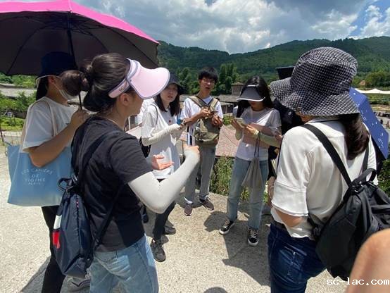 7月28日,由建规学院相关专业领域的35名教师、研究生和本科生组成的服务团队,分成艺术规划组、艺术产品设计组、艺术外墙组和艺术长廊组,再次深入绿水村开展实地考察调研及设计创作工作。艺术规划组从规划、农宅立面改造、艺术装置建构层面开展工作,利用APP记录行走路径与游览路线,观察村容村貌,记录重要空间节点与文旅业态。通过现场调研、测量与记录,与当地领导、居民交流意见;艺术产品设计组全面开展绿水村产业情况、文化资源、乡土人情方面的调研,为乡村VI视觉识别系统设计、IP打造、农特产品包装设计、乡村旅游文创产品设计搜集素材并做好前期定位分析;艺术外墙组通过实地考察和测量建筑尺寸,确定画墙绘的范围为该村水井湾社,重点绘制的区域为该社的便民服务中心入口处及进村的立面,以"农耕文化""井文化""蘑菇文化"为主题,展示诗意田园、荷花香、稻花香、群鱼游的生动美好乡村生活场景;艺术长廊组重点对小竹林社村口景观、村便民中心广场、农家庭院进行了实地测量,拟将乡村田园、道路、湖泊、山坡、树林、草地等自然景观与农业生产、农业生活场景结合,进行艺术设计。设计以农耕文化为主题,展现乡野农趣艺术及自然风光,彰显特色美丽乡村的自然形态之美、生产生活之美和历史文化之美。