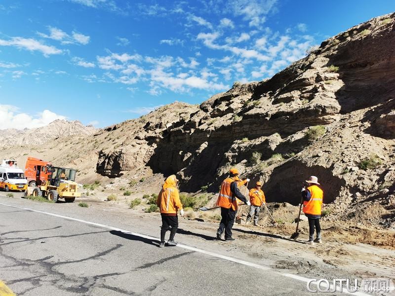 烈日之下,修路工人正在加紧保修