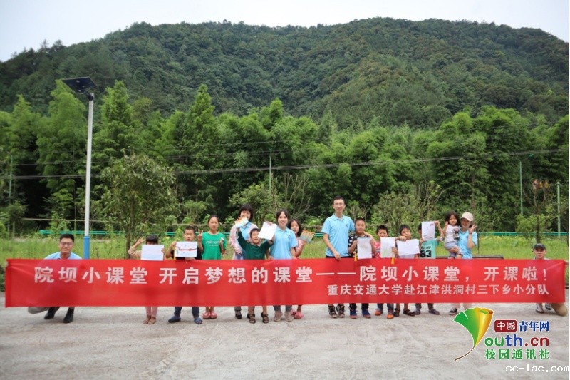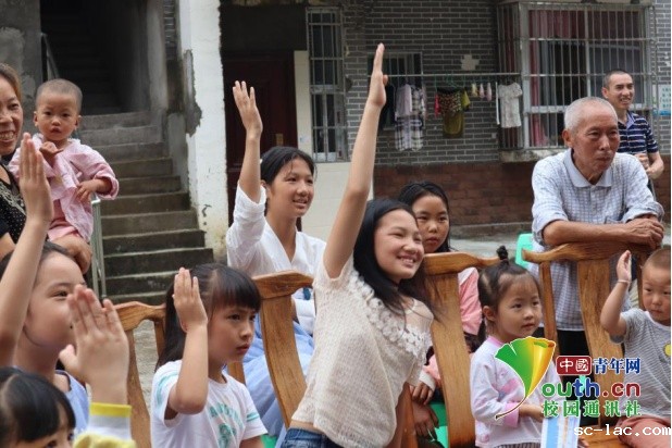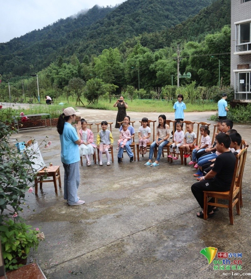 实践队队员们在课堂结束后与小朋友们的合影。中国青年网通讯员 陈烨 摄