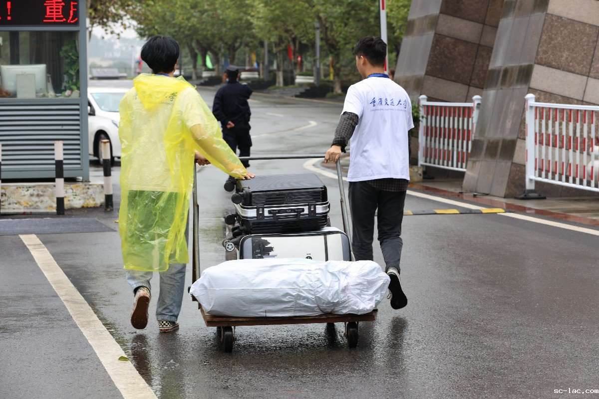 志愿者们用小推车拉着新生的行李,帮他们一路送至宿舍——步行中,遥远的路途却逐渐拉近了新生们与志愿者、学长们的“距离”,更拉近了他们与重庆交大的“距离”。