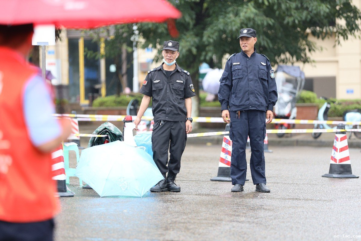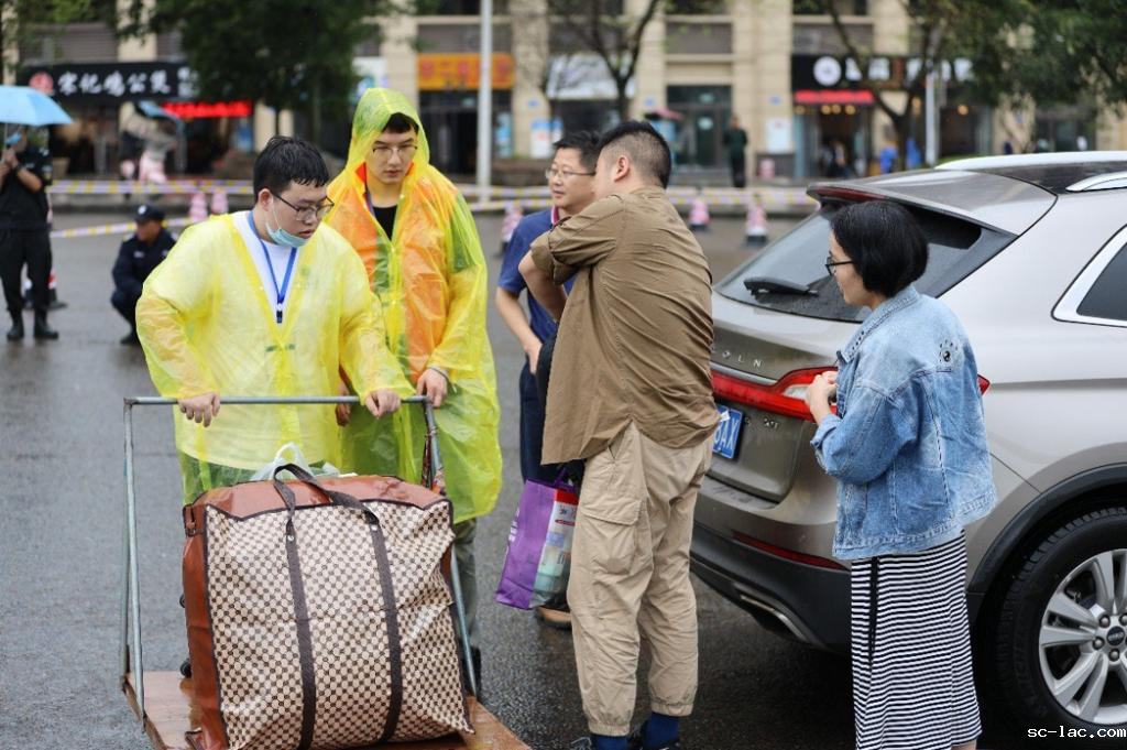 正值雨季,学校为志愿者们分发雨衣,为午班志愿者们提供餐券,确保志愿者更好地为新生服务。进入校园,干净整洁的泊油路两旁彩旗林立、路标清晰。在学校南大门,学校安保办联合江津交警,齐心协力维系着入口处的良好秩序。