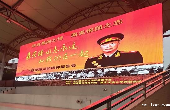 为弘扬中华民族爱国主义精神,培育大学生爱国之情、激发报国之志,9月24日晚,中共重庆市江津区委宣传部主办,聂荣臻元帅陈列馆、老伟德网上娱乐党委武装部承办的“聂荣臻元帅精神报告会”在我校双福运动场上举行。2020级全体军训学生聆听报告会。