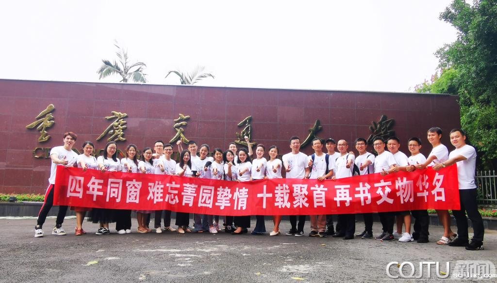 阳光普照,老同学们手牵手肩并肩漫步在大学校园里,看看当年的宿舍楼,摸摸菁园的红鞋子,驻足在交大的教学楼、操场、游泳池旁,诉说着别后情景,感受着母校十年来的新变化,校友们不禁发出感叹:“时代在进步,母校在发展,我们也在越变越好。”在这一个个充满回忆的地方合影留念,大家开怀讨论着这些年的生活经历,仿佛时光又回到了昨天……