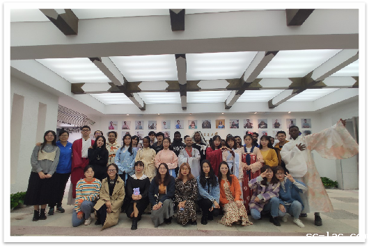 活动在一首悠扬的琵琶曲中拉开了帷幕。首先由中国学生田思雅和周雨馨讲解汉服知识。她们结合汉服发展历史的视频,重点讲解了秦汉时期的曲裾和隋唐五代的齐胸襦裙以及明朝时期出现的明立领。通过介绍几种典型的汉服让留学生们了解汉服中蕴含的中国文化与民族精神。讲解结束后,同学们非常热情的报名参与现场的汉服试穿活动。