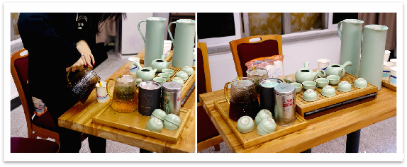 活动最后,中国学生与留学生一起品尝了绿茶和红茶,还就茶叶和咖啡的不同展开了热烈的讨论。