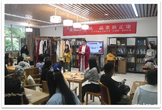 2020年10月23日,国际学院开展了以“着秦汉古风,品茶秋正浓”为主题的“汉语角”活动。活动从了解汉服起源到现场体验穿汉服,从讲述中国茶文化到探讨对茶与咖啡的差别。本次活动既展示了中华传统文化独特的魅力,又提高了留学生的汉语口语表达能力,增进了中外学生的沟通与交流。