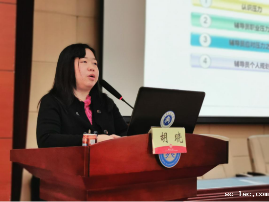 开班仪式后,西南政法大学学生处副处长、国家二级心理咨询师胡晓作“辅导员职业压力与心理健康管理”专题讲座。