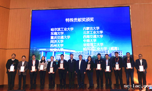本届论坛向获得特殊贡献奖的单位进行颁奖。交通运输部党校原第一副校长、交通运输部管理干部学院原党委书记张延华,哈工大副校长、威海校区校长徐晓飞为获奖单位颁发了特殊贡献奖奖牌。交通运输学院党委书记胡浩代表学校上台接受颁奖。