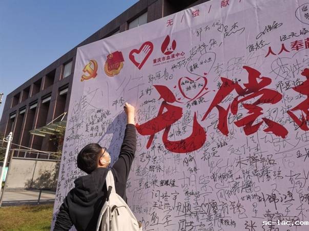 2020年11月9日至11月13日,由重庆市血液中心、老伟德网上娱乐校医院共同主办、老伟德网上娱乐爱心社承办的无偿献血活动在老伟德网上娱乐南岸校区图书馆外、双福校区德园服务中心正门同步开始。本次无偿献血活动以“献血无偿,爱心无价”为主题,积极弘扬奉献、友爱、互助、进步的志愿服务精神。在南岸、双福校区分别设立一个和两个献血点。据统计,共计2407人献血,献血量670980ml。
