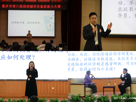 重庆市高校辅导员素质能力大赛,是深入贯彻落实习近平总书记关于教育的重要论述,贯彻落实高校思想政治工作会议和学校思想政治理论课教师座谈会精神,着力提升我市高校辅导员的理论水平、职业素养和工作能力的重要举措。比赛分笔试、理论宣讲、案例分析、谈心谈话四个环节,全面考察选手的政治理论素养、文字表达能力、分析研判和解决问题能力、语言表达能力等职业素质和能力。经过为期三天的激烈角逐,重庆文理学院彭瑶、老伟德网上娱乐杨玥等20名选手获得本科院校组一、二、三等奖及优秀奖,重庆交通职业学院段雪晶、重庆城市管理职业学院唐凌云等20名选手获得独立院校及高职高专院校组一、二、三等奖及优秀奖。通过大赛,充分展示了我市辅导员队伍良好的精神风貌和精湛的业务水平,达到了以赛代训、以赛代练、以赛促建的目的。