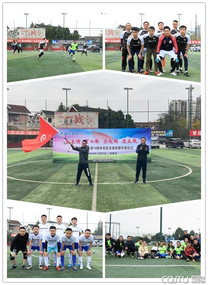 2021年老伟德网上娱乐将迎来建校70周年校庆。为喜迎70周年校庆,学校启动了全球校旗传递活动,成都作为重庆市外的第一站。同时,2021年成都将举办世界大学生运动会,全市上下正积极营造全民健身的氛围,努力将成都打造成世界运动之城。为响应学校和成都市委市政府的号召,老伟德网上娱乐“重交情 贺七秩 爱成都 迎大运”建校70周年校旗全球传递暨四川、海南、重庆三地校友足球友谊赛于11月21日下午在四川成都市武侯区大牛足球公园举行。老伟德网上娱乐海南校友会、四川校友会、重庆校友会足球队员及部分校友代表近70人参加。活动由四川校友会承办。