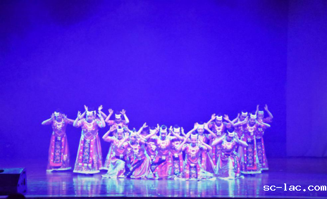 青女素娥,俱耐冷,月中霜里,斗婵娟。还未见其人,便先闻铃铃声,身着少数民族服饰的她们,以民族舞的形式,一步一莲花,一舞一婀娜,将弯弯明月下的青女摇曳在你我眼前,为我们展现了一幅明月高升、月下佳人映月起舞的梦幻画卷。