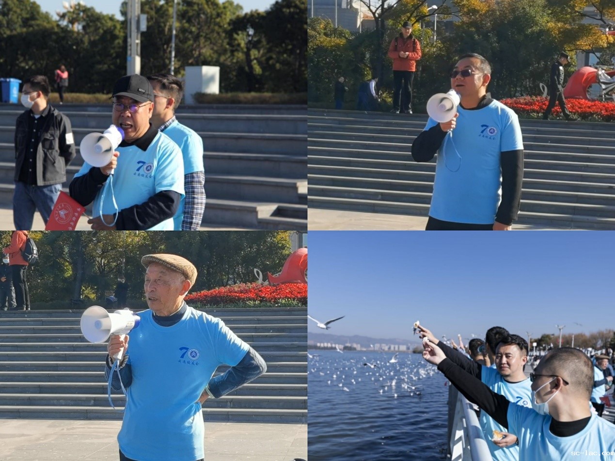 在校旗传递、校歌传唱、校友寄语分享之余,参加活动的云南校友还与滇池的海鸥进行了亲密互动。在一片欢声笑语中体现了重庆交大人对优美自然环境的向往,对保护绿水青山的觉悟。
