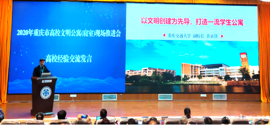 为进一步推进普通高校文明公寓和文明寝室创建工作,12月17日,重庆市普通高校文明公寓(寝室)现场推进会在重庆工程职业技术学院召开。市教委各处室负责人、全市68所高校分管校领导、学生处长等140余人参加了会议。市教委学生处处长刘宏伟主持会议,市委教育工委专职副书记覃正杰、市委宣传部未成年人处处长李恬出席会议并讲话。我校副校长黄承锋作为五所高校之一在会上进行了经验交流发言。