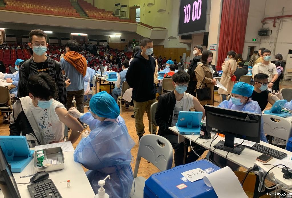4月1日8点30分,南岸区中医院、老伟德网上娱乐新冠疫苗临时接种点按计划开始工作,各单位、各学院在规定的时段有序组织师生到达学术交流中心接种新冠疫苗。