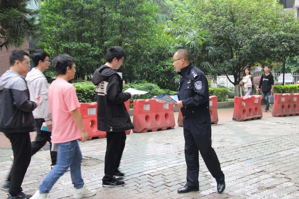 4月23日,由学校安稳办、安全管理处、党委宣传部、党委组织部、学生工作部、校团委、后勤服务总公司和离退休处联合主办的“全民反诈你我同行”的反诈骗主题宣传活动在我校学术交流中心广场举行。本次活动得到了南岸区公安分局四公里派出所、驻校七公里派出所的大力支持。校党委副书记郑旭煦亲临现场参与活动,与师生亲切交谈,了解宣传教育活动效果。