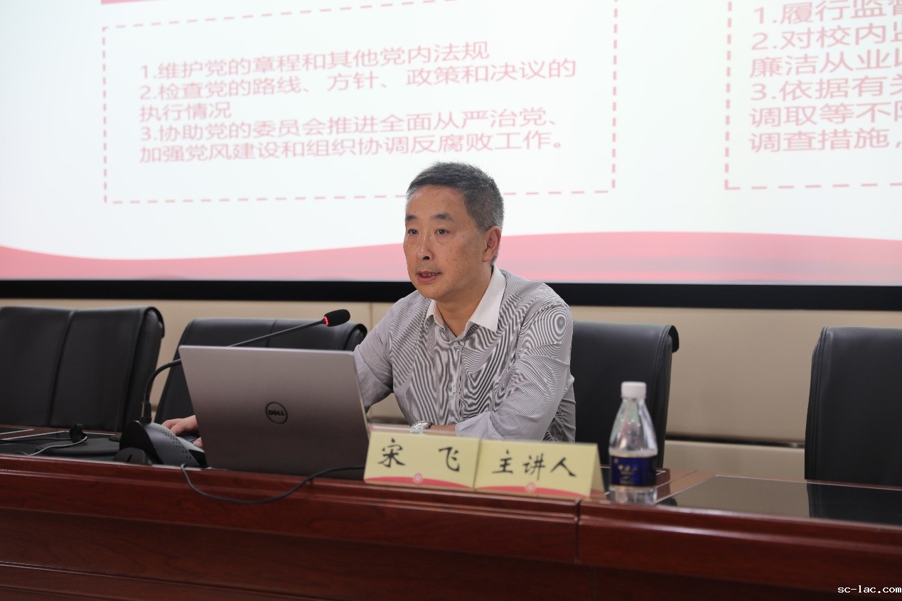 为深入贯彻落实习近平总书记关于教育工作的重要指示精神,扎实推进师德师风建设,全面提升我校新入职教师思想政治素质、师德师风水平和廉洁从教意识,10月9日下午,党委教师工作部联合校纪检监察室,特邀校纪委书记宋飞在南岸校区党风廉政教育培训中心做题为《新入职教师党风廉政专题教育》的讲座,教师发展中心办公室主任朱辉荣主持讲座,各学院(部)70余名2021年新入职教师参加了培训学习。