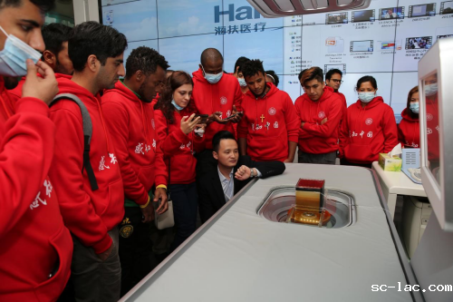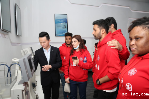在参观海扶医疗期间,留学生们亲身体验超声治疗技术,了解了中国在践行“健康中国”道路上做出的不懈努力和取得的伟大成就。叙利亚留学生卢冉对“海扶刀”表现出浓厚的兴趣,她频频和讲解员进行交流,仔细询问超声技术与同类方法在费用和效果方面的优势。