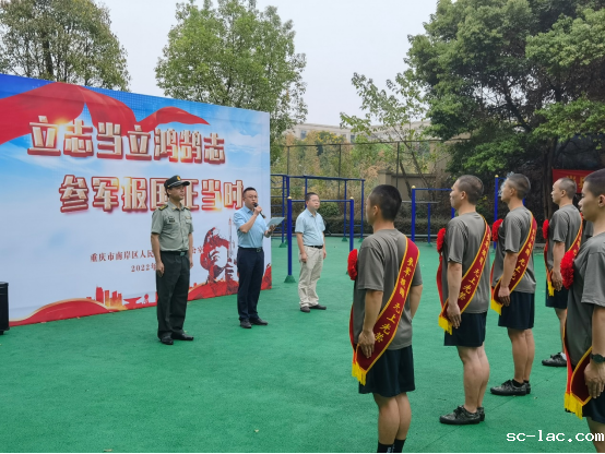 立志当立鸿鹄志,参军报国正当时。为激励更多学生参军入伍,积极营造当兵光荣的良好氛围。9月15日,学校在南岸区茶园新城中学役前集训基地,举行2022年秋季入伍大学生欢送仪式。南岸区人民武装部军事科科长游斌、学校党委武装部、学工部部长叶勇、学校党委武装部全体成员、2022年秋季应征入伍大学生参加欢送仪式,仪式由学校党委武装部、学工部副部长王世佰主持。