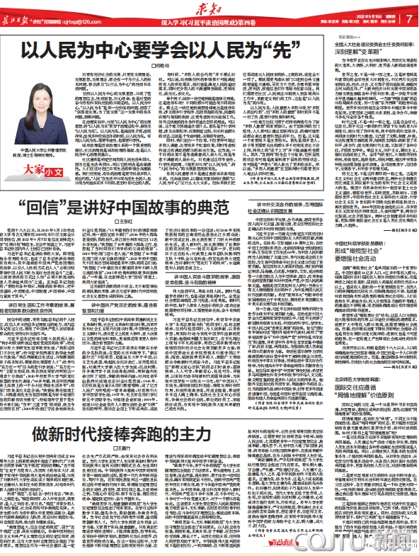 2022年9月15日,《长江日报》刊发我校马克思主义学院2021级硕士研究生王鑫竹所撰写的理论文章《做新时代接棒奔跑的主力》。《长江日报》是中共武汉市委机关报,综合实力位列全国城市机关报第一方阵。