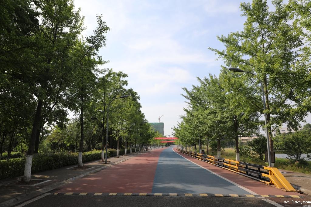 特点:路面大块红蓝色,颜色亮丽;秋天的银杏路是科学城校区必看景点