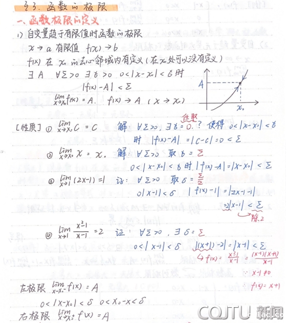 在高等数学的探索旅途中,课堂笔记是我学习的一个重要工具。它不仅能帮助我巩固知识点,还能让我在思考的过程中更加深入地理解数学概念。帮助我理解记忆数学知识点,加深对抽象概念的形象理解,还能够作为扫除知识盲区的一道利器。做课堂笔记需要长期的坚持,以及对知识不断深入的理解,相信你一定能够从中有所收获。