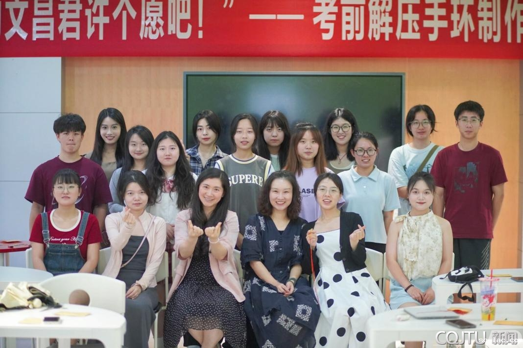 本次直播针对考前减压,主题是“向文昌君许个愿吧”,活动获赞6.4万余次,约300名学生参加直播,同学们纷纷在线上连线表达考试压力和焦虑,也在主播老师们的带领下,分享减压tips,在制作“文昌节减压手环”的小细节中,放松身心。部分师生同步参加线下手工坊,携手弘扬传统文化,欢度端午佳节。