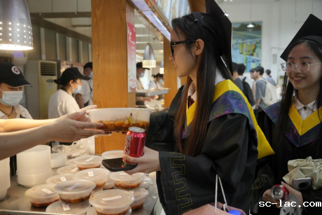 6月20日,在毕业典礼结束后的午餐时分,排队领鱼的同学络绎不绝,同学们纷纷表示高兴与惊喜。