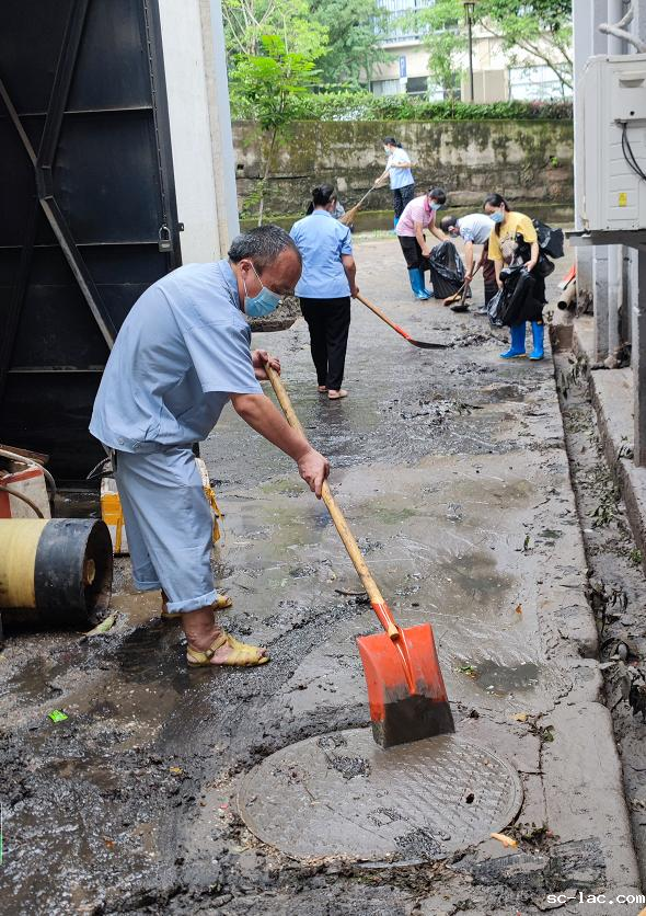 全力以赴。在抢险过程中,后勤人展现了高度的责任感和敬业精神。倒伏树木被及时清理,道路得以迅速恢复通行,师生出行安全得到了保障。积水得到一定程度的缓解。目前,抢险工作仍在进行中。已退去积水的地方,后勤立即组织清淤、消毒和冲洗。