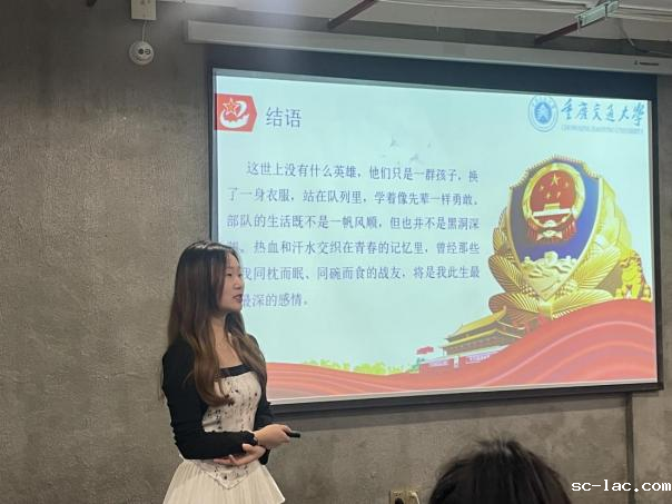 “这世上没有什么英雄,他们只是一群孩子,换了一身衣服,站在队列里,学着像先辈一样勇敢。”故事荟上,汪岚娟分享了自己当兵入伍的部队经历。从自己的成长背景出发,受到哥哥的影响义无反顾地选择成为了一名女兵,在新兵连里磨练意志、收获友情,在训练中对“军民一家亲”有了切实的体验。退伍回来的汪岚娟依旧保持着严谨踏实的行事风格,取得优异成绩的同时还担任学生干部,获得10余项个人荣誉称号。她的成长经历让同学们看到了不一样的大学生活,也感受到了入伍的魅力。她成长在新时代阳光下,发扬退伍不褪色的优良作风,将报国之心、强军之志融入个人理想追求之中,让奋斗基因融入青春血脉,让拼搏精神成为最鲜红、最厚实、最有力量的青春底色。