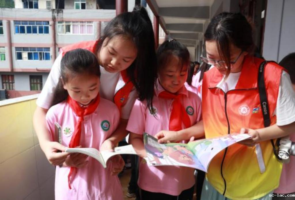 团队成员们在向孩子们介绍书籍内容。学校供图华龙网发