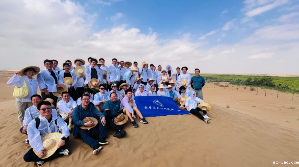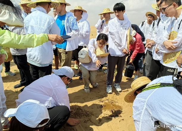 8月29日至31日,中国科学技术大学工程科学学院2022级和2023级钱学森力学科技英才班、力学强基班39名同学在基地开展了劳动实践及研学活动。黄沙万里昔日荒,今朝绿意盎然生。师生们在易志坚教授的带领下参观体验了这片大漠“绿洲”,亲眼见证了“沙变土”实验,在劳动实践的过程中发现了“土壤化”沙地具有的独特“倒装结构”及发达的植物根系,对沙漠土壤化生态治理的力学机理、技术路线与成效有了深刻的认识。