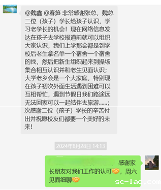 两位新生家长代表发表了感人肺腑的讲话。他们深情回顾了自己当年初入大学校园的情景,提及那时学长们如何积极地与新生建立联系,并分享了那段充满期待与挑战的日子。同时,他们也对现今信息技术的发展表示赞叹,指出现在的学生即使还未踏入校园,就已经能够通过网络平台与不同年级的校友进行交流互动。