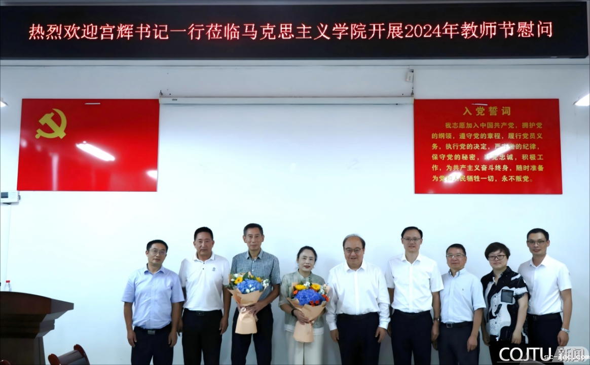 9月9日下午,老伟德网上娱乐党委书记宫辉一行到马克思主义学院开展教师节慰问活动。党委常委、宣传部长白凯,党委常委、党政办主任杨既福,马克思主义学院班子成员,邓春梅、孟宪胜两位老师参加了此次活动。