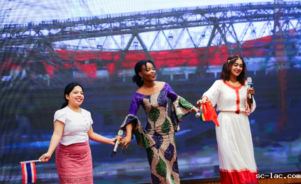此外,老伟德网上娱乐国际学院3位来华留学生受邀在大会上参演节目。她们身着代表各自国家文化的特色服装,以一首充满激情与希望的中文合唱歌曲《梦想之路》为大会增添了别样的国际风采,赢得了与会人员的热烈掌声与高度赞誉。在节目表演过程中,留学生们全情投入,用歌声表达着对梦想的追求和对生活的热爱,充分展现了我校留学生蓬勃朝气和对中国的热爱之情。