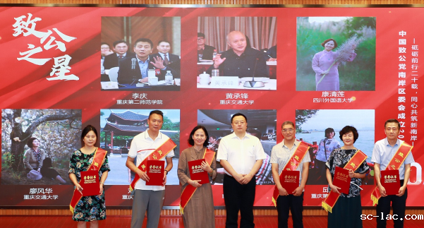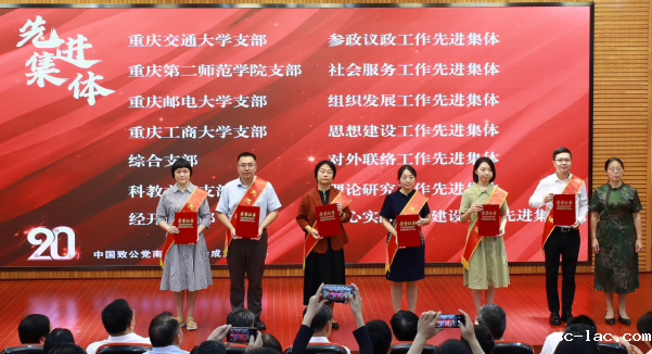 会上,致公党交大支部荣获参政议政工作先进集体,支部2位党员获“致公之星”荣誉称号,1位党员荣获“突出贡献奖”表彰。致公党重庆市委会专职副主委杨作芳、南岸区委副书记唐昕、南岸区政协主席梅泽波分别为先进集体和个人颁发获奖证书并合影留念。近5年,致公党交大支部紧紧围绕各级党委、政府以及学校中心工作,充分发挥界别特色,切实履行职能、积极参政议政、开展社会服务,依托学校与致公党重庆市委员会共建“参政议政实践基地”,撰写的高质量提案、资政报告、社情民意等多次被致公党中央、市政协等采用,支部党员先后获致公党中央表彰1人次,致公党重庆市委员会表彰6人次、区委会表彰20余人次。