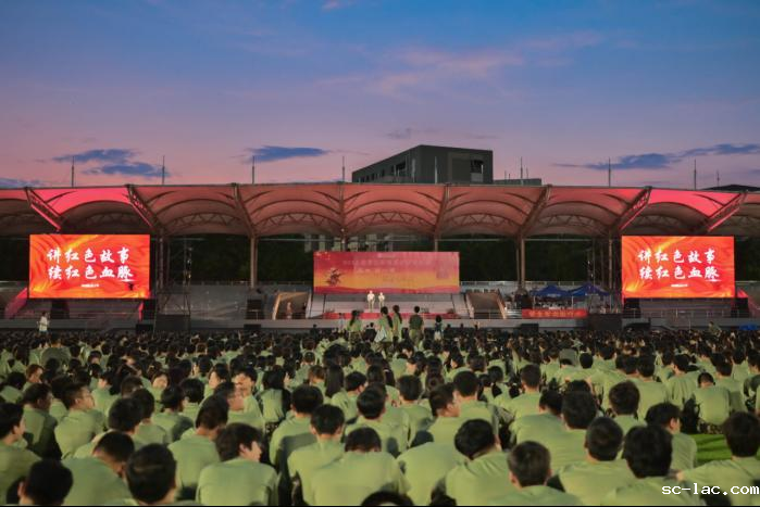 讲红色故事,续红色血脉。军训教官通过演讲、舞台剧、歌曲传唱等形式,向同学们生动展示自身经历、烈士战友守卫边关、保家卫国的英勇事迹和光辉形象。“清澈的爱,只为中国!”不少同学为这深情告白而感动,红了眼眶,湿了衣襟,触动了心灵深处。“你有光明,中国便不黑暗。”一位曾经参与执行重要任务的教官带来节目《我站立的地方是中国》。满是血泡的嘴、通红的脸颊、干裂的手掌,这些并不美好的词汇却给同学们勾勒出一群新时代最可爱的人的模样。教官号召同学们,做一个追光者,追逐光辉人物的脚步,坚定理想信念,珍惜大学时光,积极拼搏进取,锤炼意志品质,发出属于中国青年的一点光、一份热。