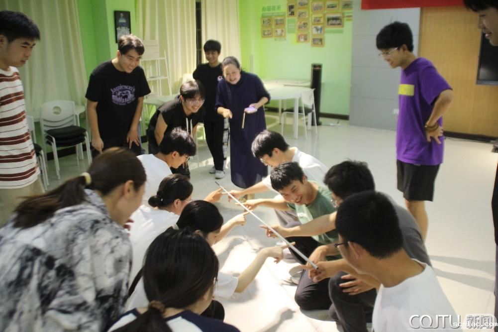 活动中,通过暖身活动“爱出爱返”,同学们围出一个大圈,互相轻拍肩部,拉近了彼此的距离。随后,分成三个小组进行自我介绍,并在汤文芳老师的组织下参加了“风中劲草”“齐眉棍”“盲人方阵”和“心有千千结”等趣味小游戏。现场气氛热烈融洽,充满欢声笑语。
