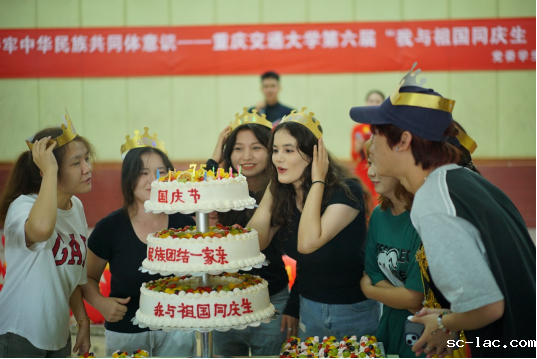 当天,与国庆同生日的同学们还收到一份特别的惊喜。精美的蛋糕缓缓登场,伴随着温馨的《生日快乐》旋律,全场师生对“寿星”们表达了衷心的祝福,一同唱起对祖国繁荣昌盛的颂歌。